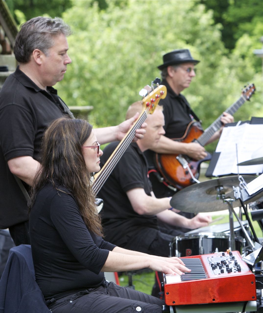 Our lovely rhythm section concentrating very hard with special guest Caroline on keys