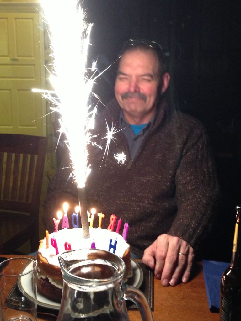Dave being a Trombonist had no problem blowing out his big sparkly candle.