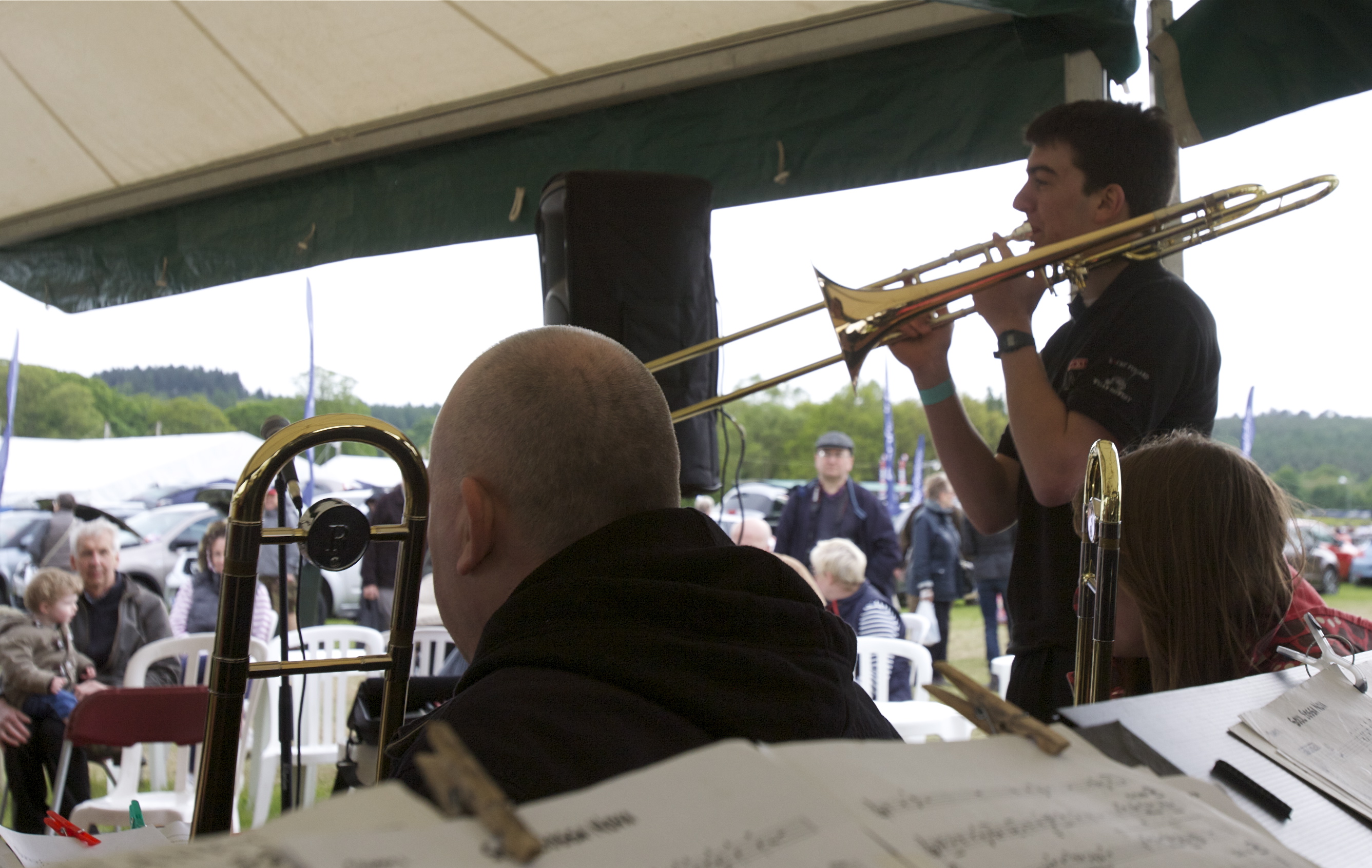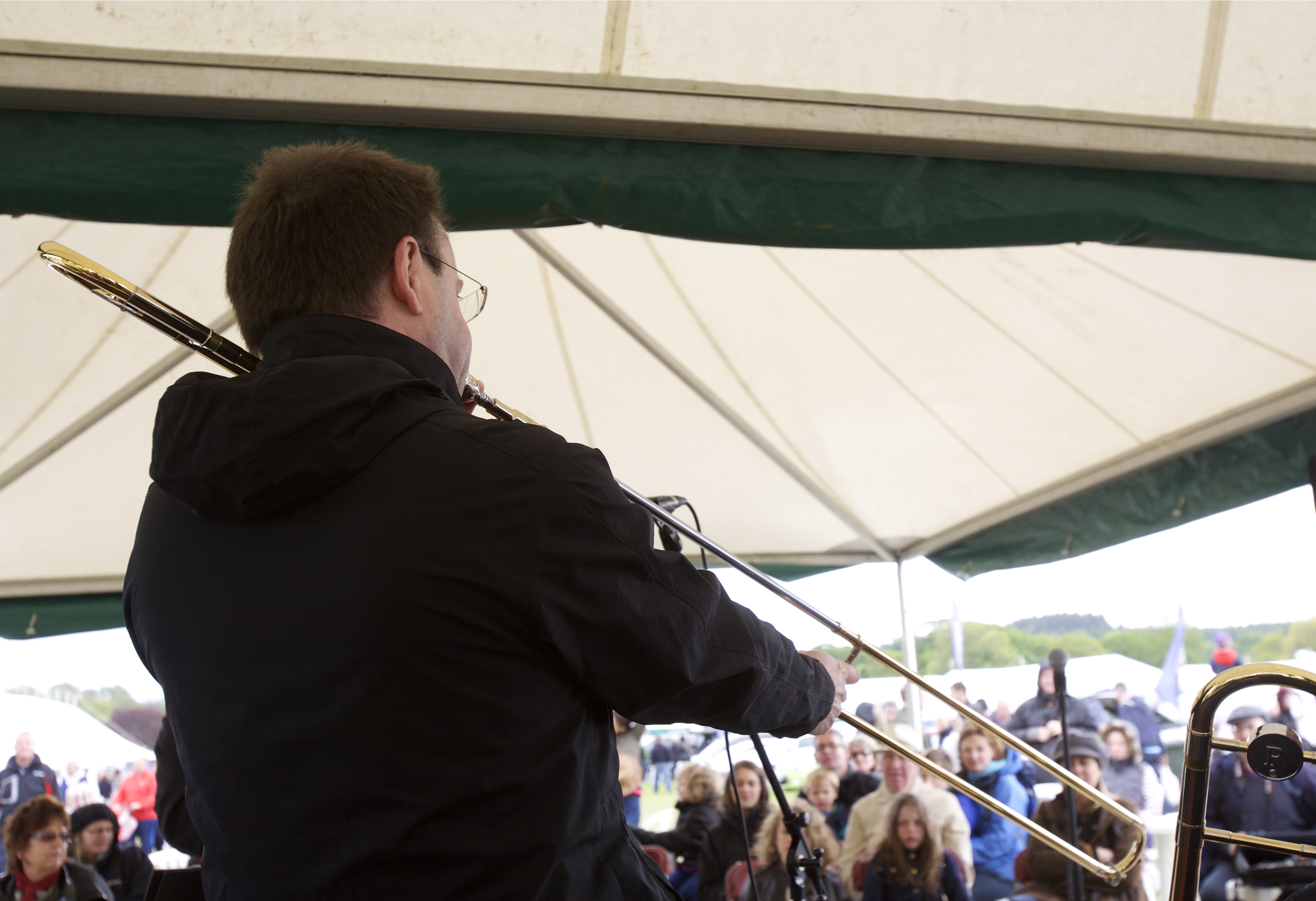 Here we see Mr Dave Barnes keeping warm with some vigorous tromboning.