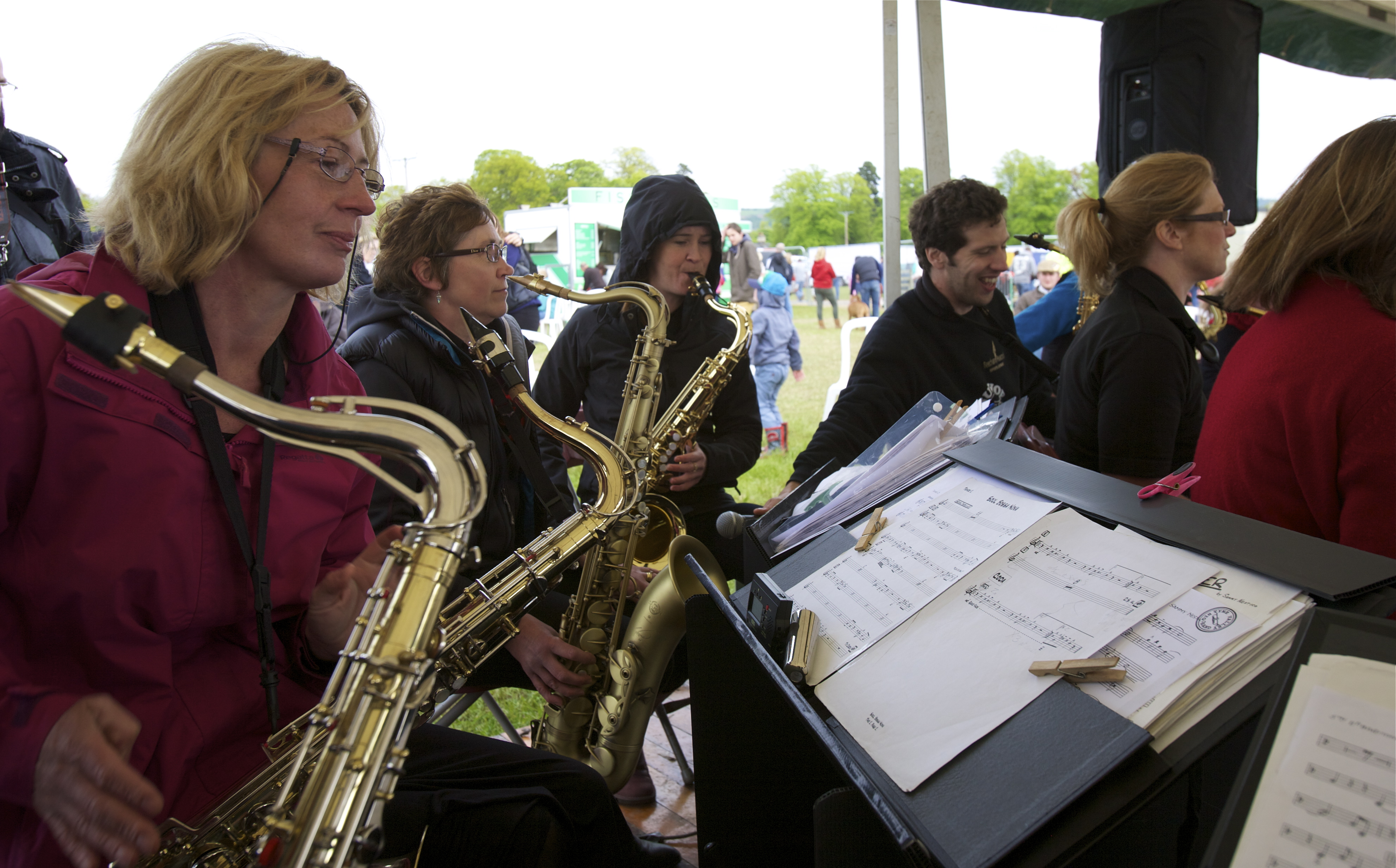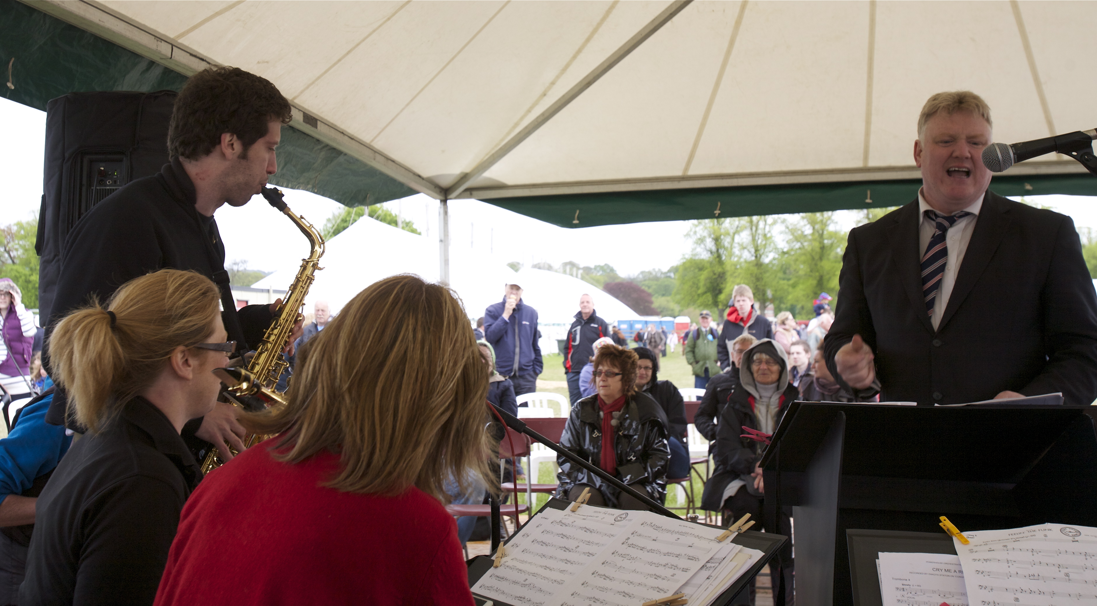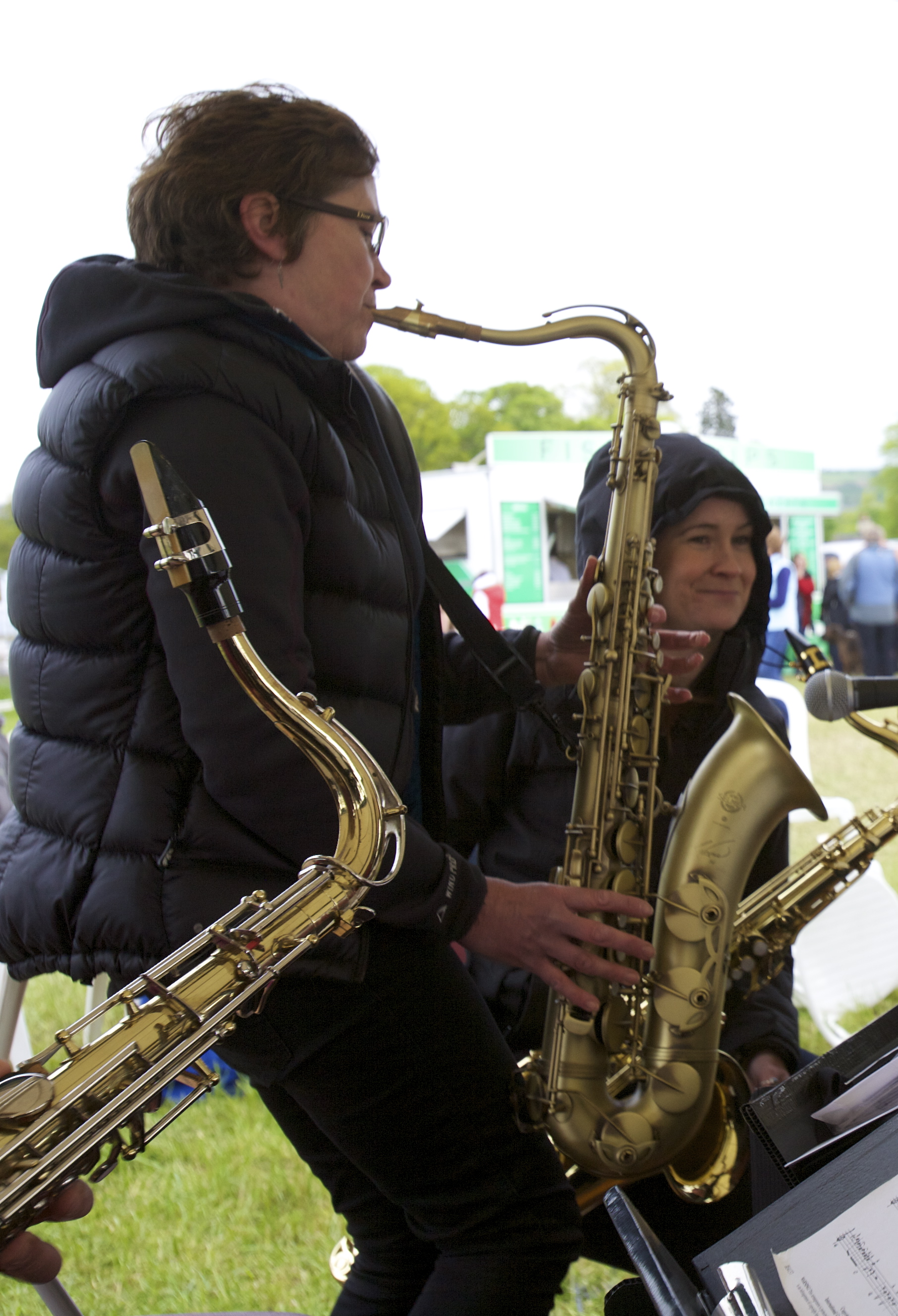Our Alto Sax section were deluged when the marquee roof leaked in a particularly vicious gust. Dianne and ‘Choppy’ bore the brunt of this but carried on regardless showing true professionalism in the circumstances.