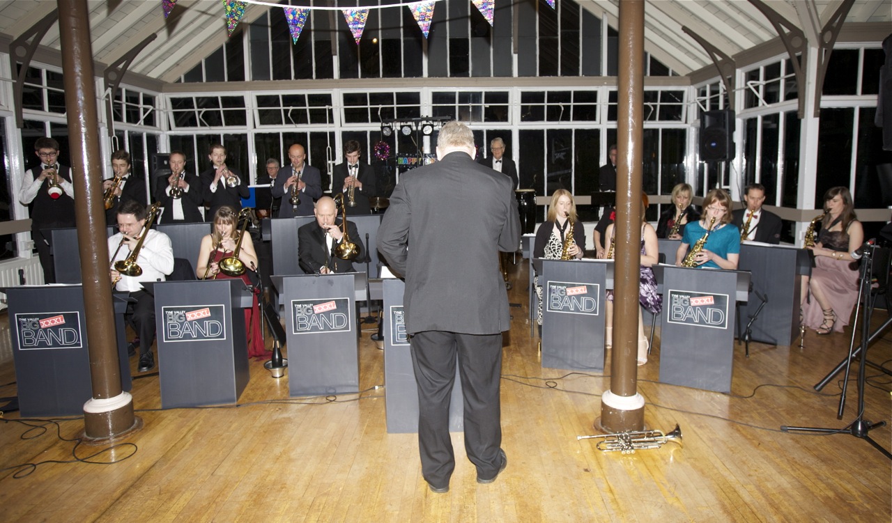 Resplendent in black tie and posh frocks for the second week running, the band set up under cover of darkness.